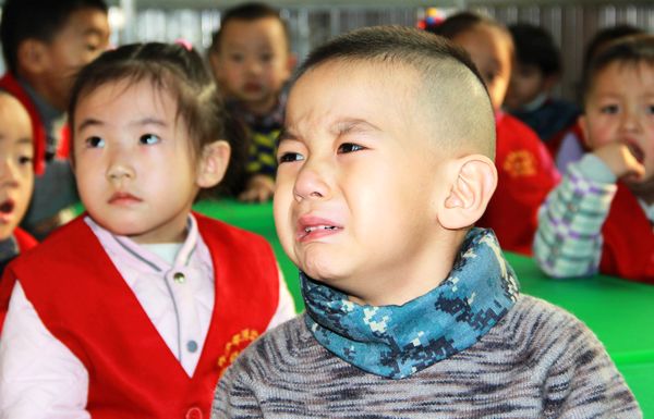 3月3日,幼兒園的孩子們開學(xué),一位孩子在哭泣 。 本網(wǎng)記者 劉志強(qiáng)攝