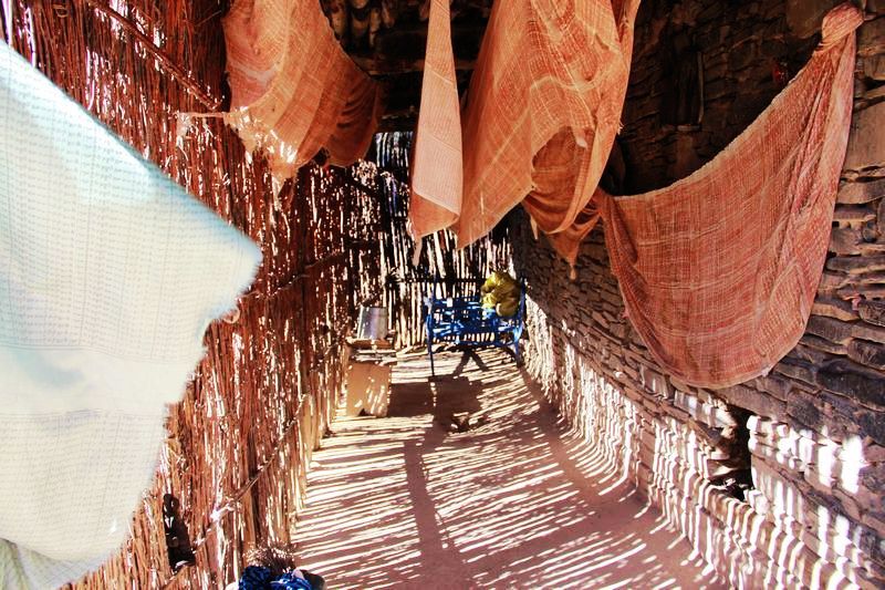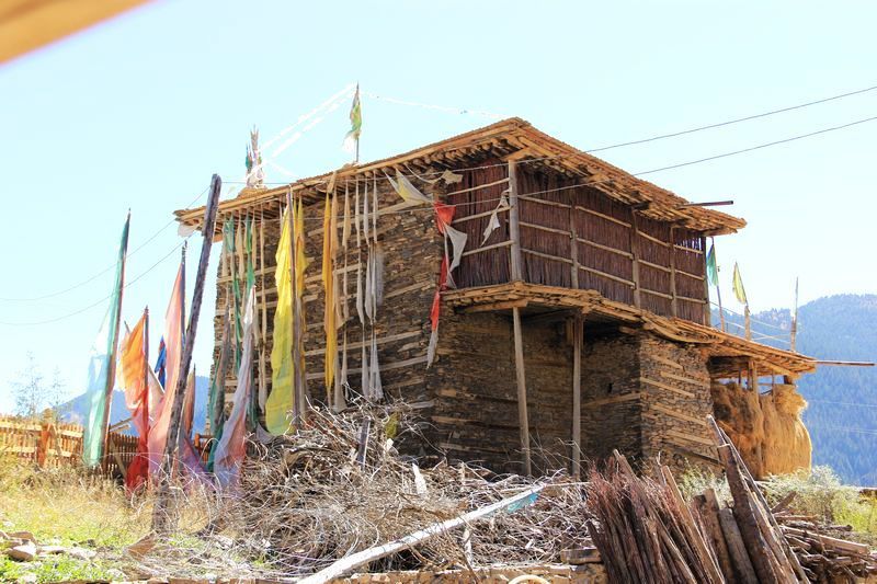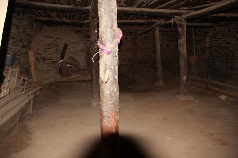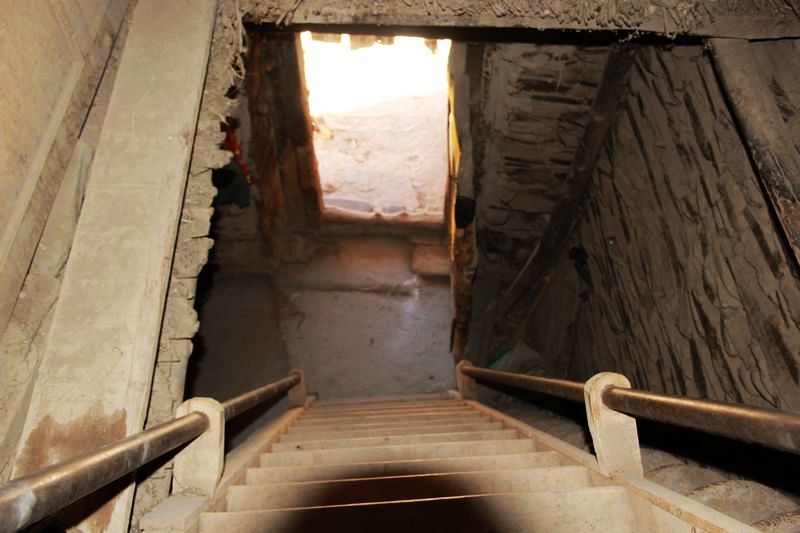 這座藏式碉樓共上下三層,一層為圈牲口,放一些農用的家當;二樓為人居住的地方;三樓為佛堂,掛一些經幡之類的東西。