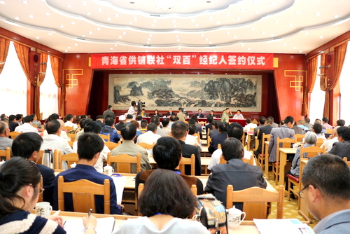 青海新聞網(wǎng)訊(本網(wǎng)記者 陳文淵 攝影報(bào)道) 6月11日上午,由青海省供銷合作社主辦的第五屆特色農(nóng)畜產(chǎn)品推介洽談會(huì)簽約儀式在西寧賓館舉行,包括香港、臺(tái)灣地區(qū)客商,上海、河北、內(nèi)蒙古、浙江等21個(gè)省100名經(jīng)紀(jì)人,與青海省供銷系統(tǒng)內(nèi)的100名經(jīng)紀(jì)人簽訂了購(gòu)銷合同。簽約意向金58億元,比去年增長(zhǎng)9億元。