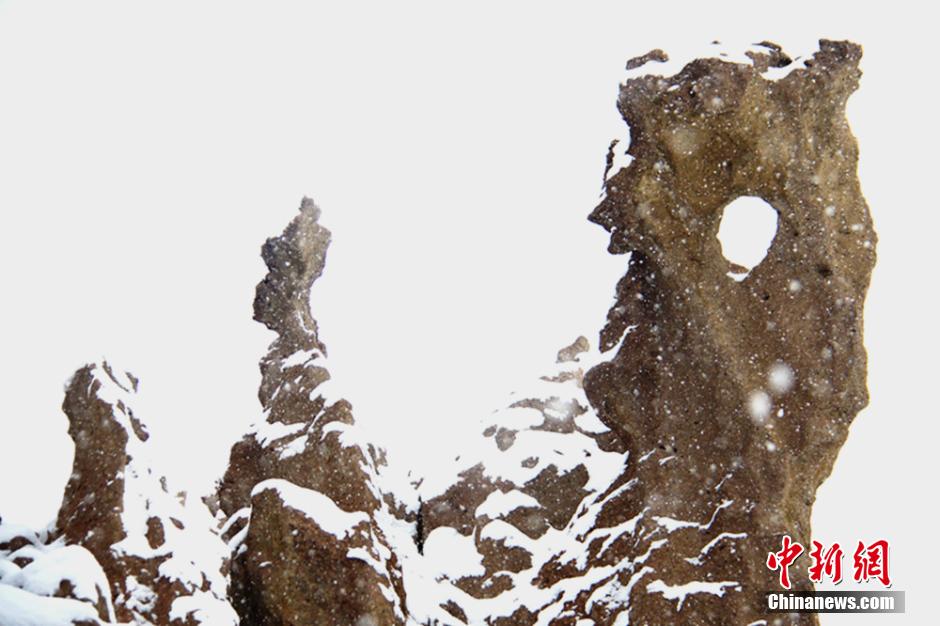 新疆托克遜怪石林大雪天“怪態(tài)百異