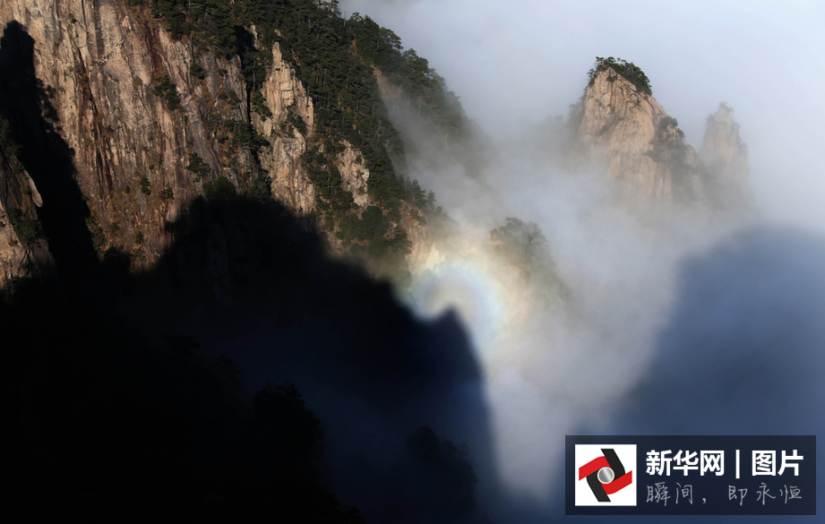 2015年12月28日,安徽黃山風景區雨過天晴,出現罕見迷人的“佛光”美景。圖片來源:cfp