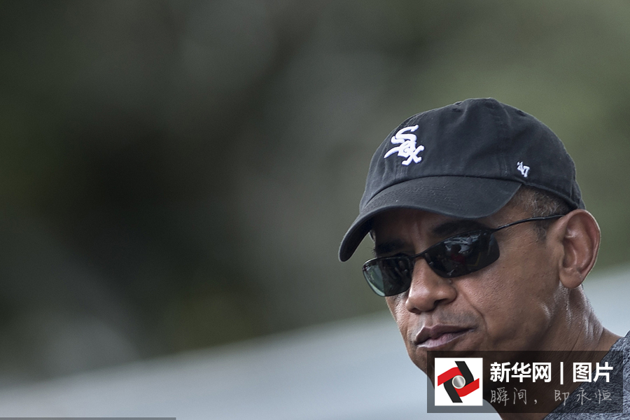 當地時間2015年12月27日,美國夏威夷州凱盧阿,美國總統奧巴馬與家人在當地度假,奧巴馬前往夏威夷街邊的刨冰店Island Snow Shave Ice購買刨冰大快朵頤。