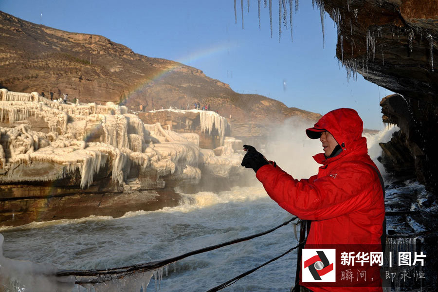 黃河壺口瀑布現美景:冰掛彩虹相映成輝
