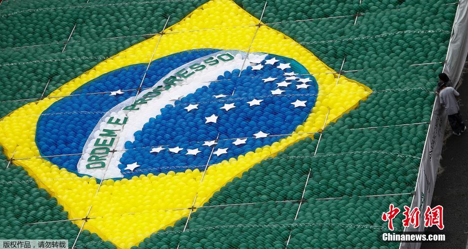 數千氣球拼成巴西國旗圖案 齊放飛慶祝新年