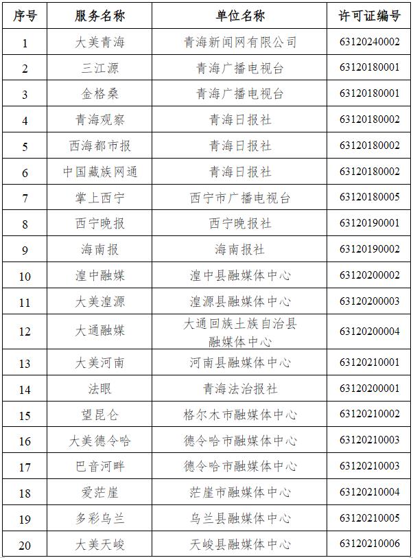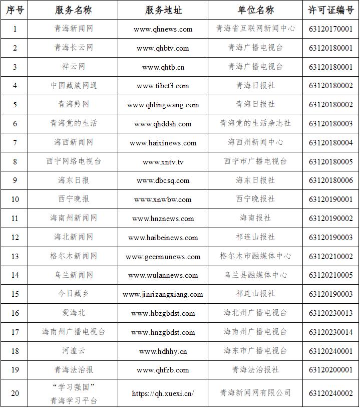 附件:青海省互聯(lián)網(wǎng)新聞信息服務(wù)單位許可信息