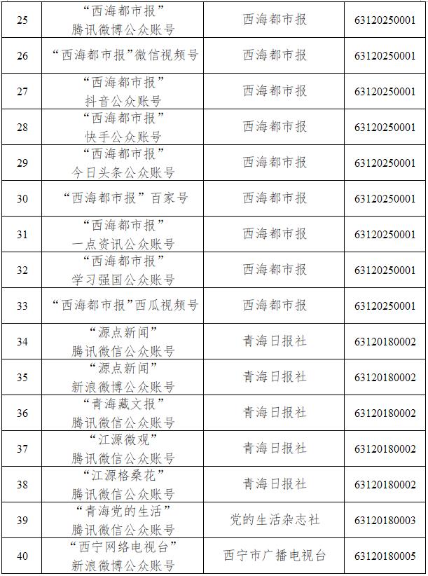 《互聯網新聞信息服務管理規定》(國家互聯網信息辦公室令2017年第1號)實施以來,青海省互聯網信息辦公室按照國家網信辦統一工作部署,組織開展屬地互聯網新聞信息服務許可審批工作。現將青海省互聯網新聞信息服務單位相關許可信息予以公開,包括:互聯網站21家,應用程序58個,網絡直播1個,公眾賬號135個,共計215個服務項。
