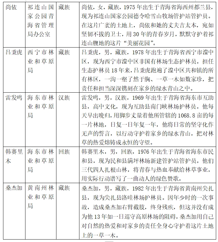 擬選樹青海省“最美生態管護員”名單