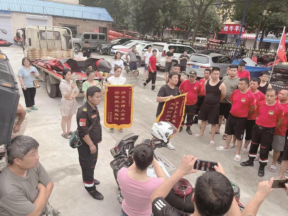 “群眾的生命安全高于一切。當時一艘救援艇破了,另一艘趕緊折回繼續轉移群眾。”馬成平說,他們當日17時結束救援任務,趕回安置點休整。