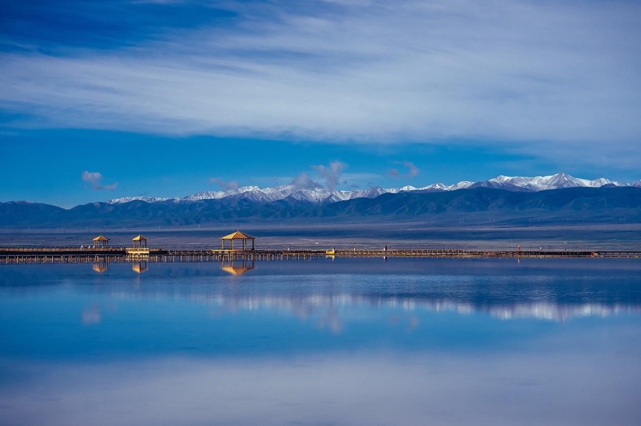 茶卡鹽湖-茶卡天空壹號(hào)景區(qū)背靠萬山之祖昆侖山,地處柴達(dá)木盆地東大門,可南眺昆侖山,北望祁連山,鹽湖倒影如畫。(景區(qū)提供)