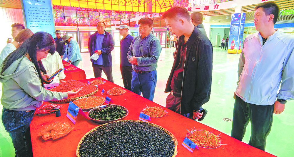 步入收獲的季節(jié),青海柴達(dá)木枸杞又獲豐收,尤其是海西蒙古族藏族自治州都蘭縣以獨(dú)特的優(yōu)勢(shì)資源,大力推進(jìn)全縣枸杞產(chǎn)業(yè)發(fā)展,已建成全國集中連片種植規(guī)模最大、單產(chǎn)產(chǎn)量最高、產(chǎn)品品質(zhì)最優(yōu)的枸杞種植示范基地。圖為交易中心一角,正在展示基地種植的枸杞。(9月4日攝)
