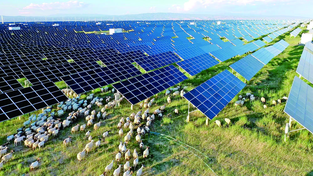“板上發電、板下牧羊”,在光伏園區放養的藏羊吃掉了生長茂盛的雜草,既節省了牧民的飼料成本,也減少了光伏園去除雜草的人工成本,實現了光伏企業和農牧民雙向受益。