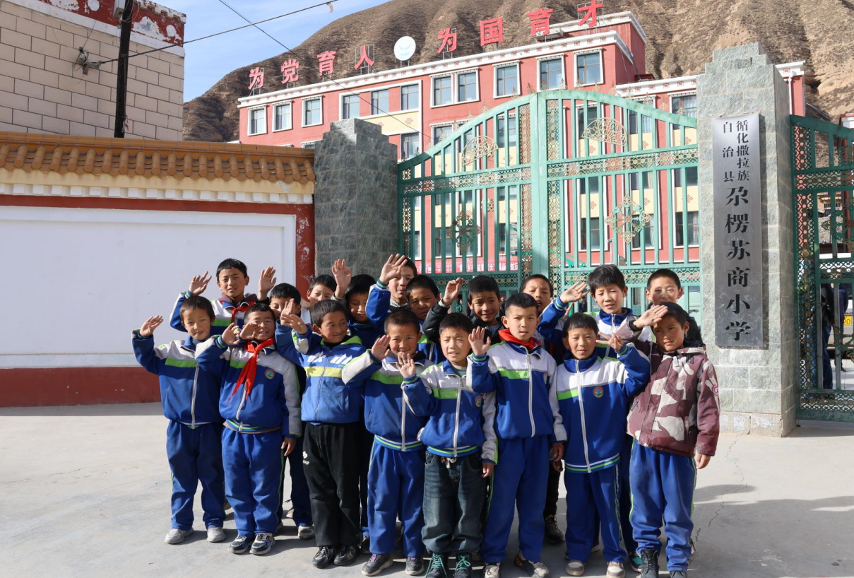 青海省循化縣尕楞鄉中心小學(尕楞蘇商小學)校門口。朱月琴 攝