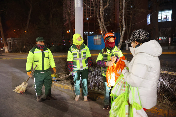志愿者米文婷、祁得梅、楊深在順利完成城中片區愛心餃子和暖心禮包發放工作后,略有遺憾:“有的環衛工人與志愿者擦肩而過,沒能領到餃子和禮包,但他們的身影照亮了城市的每個角落,讓每個人心里都亮堂了起來!”