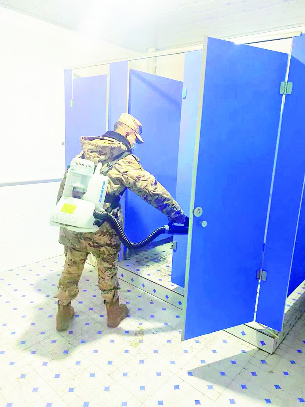 武警青海總隊海東支隊軍醫正在為安置點群眾巡診。受訪者供圖