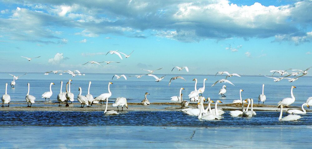 從西寧市城中區出發,驅車行駛2個小時,便抵達我國最美的湖泊——青海湖。每年冬季,許多在青海省境內落腳休憩的大天鵝,成為一道美麗的風景。冬日的青海湖畔、黃河岸邊,成群的大天鵝,悠然自得地在湖面上覓食、嬉戲。攝影愛好者用手中的鏡頭,記錄著自然精靈的精彩瞬間。其他越冬水鳥的身影,也為冬日的青海增添了無限生機。