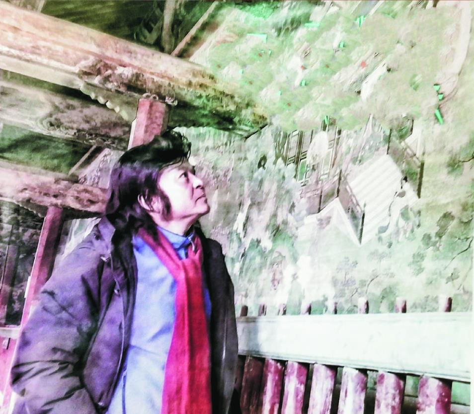 他暗自喟嘆,瞿曇寺能保存下來,真是萬幸,但由于歲月侵蝕,墻面上灰泥和草泥剝離,部分畫面起鼓、剝落受損,回廊壁畫的色澤在風沙打磨下變得單薄脆弱,更何況氣候變化、地震山洪等意想不到的災難,很有可能讓瞿曇寺壁畫面臨消失的那一天。而且瞿曇寺壁畫手稿并未傳世,600多年來不見一個副本。劉觖在國外生活多年,在世界各大博物館中,看到過帶墻皮被挖走的中國古代壁畫,憤懣之情難以言說。經(jīng)過一段時間的沉淀、思考,在查閱資料、學習考證后,他作出了一個連他自己都吃驚的決定:臨摹、復制、補繪瞿曇寺回廊得以幸存的400多平方米的壁畫,以畢生所學再現(xiàn)明代宣德年間回廊壁畫的高光時刻,為中華民族留下這一珍貴的文化遺跡。