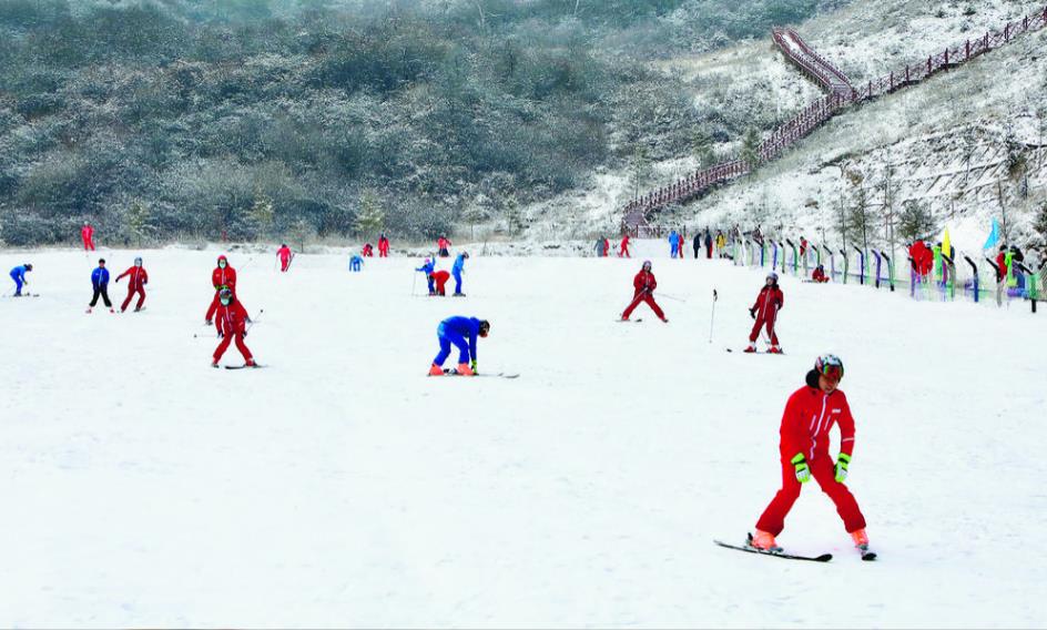 開闊的滑雪場里,滑雪愛好者身穿色彩艷麗的滑雪服,手持雪杖,腳踏滑板從高處沿雪道呼嘯而下,驚險刺激,愜意至極……藍天白云下,伴隨著濺起的朵朵雪花,滑雪愛好者在雪道上滑出了一道道美麗的弧線。