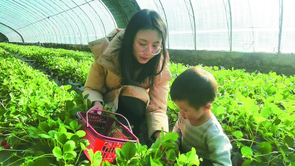 室外寒冷,大棚內卻溫暖如春。西寧市民趙女士和家人帶著孩子前來體驗采摘樂趣,在田壟間精心挑選成熟的草莓,享受寒冬里別樣的輕松與愜意。