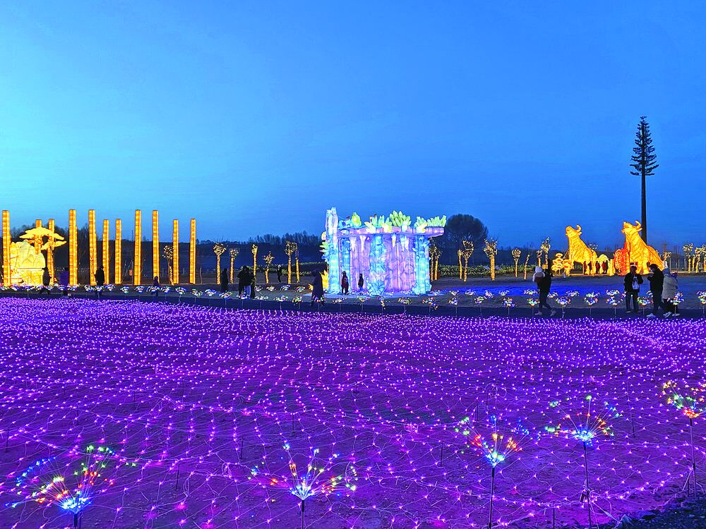 景區(qū)門口,以松贊干布和文成公主為造型的燈展抓人眼球;穿越紅色的拱形龍門,子鼠、丑牛、寅虎等一個個栩栩如生的生肖燈展極具觀賞感;綿延環(huán)繞的燈帶,相互交錯的燈光,點(diǎn)燃了鄉(xiāng)村“夜生活”,激活了鄉(xiāng)村“夜經(jīng)濟(jì)”。