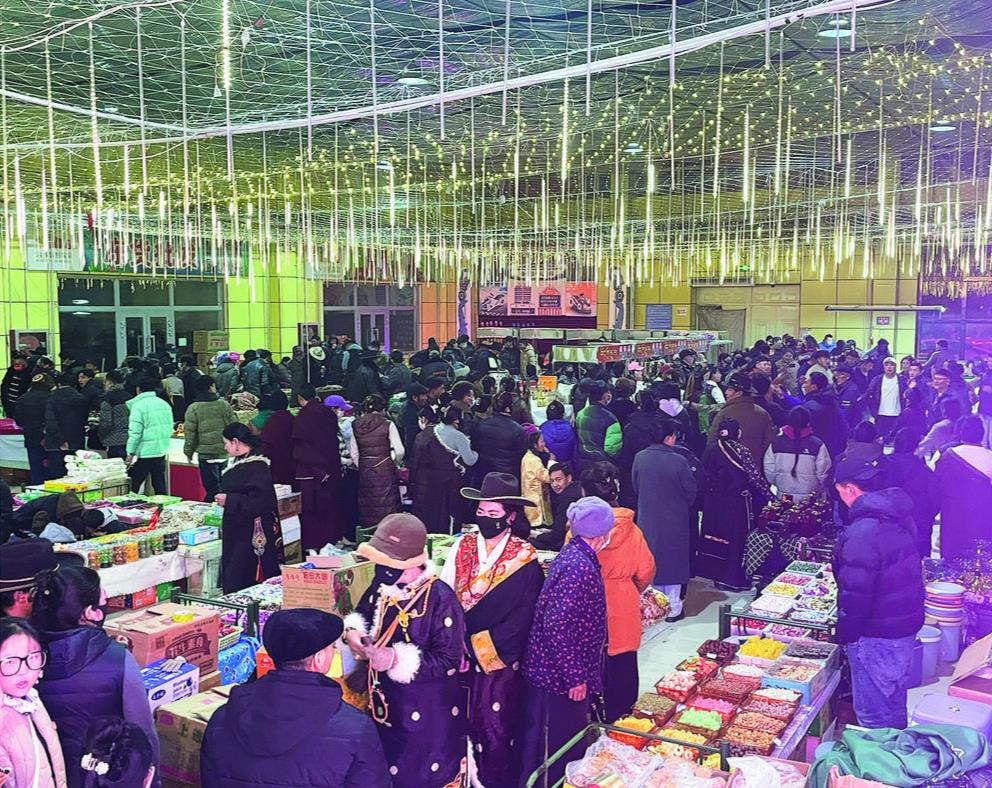 一旁,加吉博洛鎮(zhèn)居民文德扎西拎著兩大袋年貨準(zhǔn)備返回。“新年就要到了,一定要把該備的年貨備足,你看,我給孩子買了各式各樣的糖果,還有干果、飲料。黨和政府為老百姓打造的這個夜市真的好,吃的、用的、玩的啥都有,跟城市里的商場差不多。”文德扎西開心地對記者說。