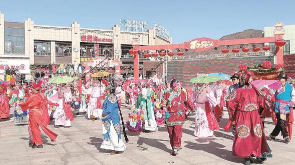 14時許,活動在黃家寨鎮上陶村村民表演的《鼓鳴盛世》中拉開帷幕。隨后,龍舞《祥龍祈福》、歌舞《咱們村里有春晚》、老秧歌《八大公子迎新娘》、旱船《眾人開啟幸福船》、民俗體驗《五谷豐登種皇田》、花燈《萬家花燈慶團圓》、高蹺《扭出幸福》、舞獅《王者榮耀》、戲曲《新征程上勇向前》等精彩的節目輪番上陣,各展演隊伍陣勢強大,演員個個精神抖擻,舞出了幸福,敲出了吉祥,用表演展示了新時代大通人民的精氣神。