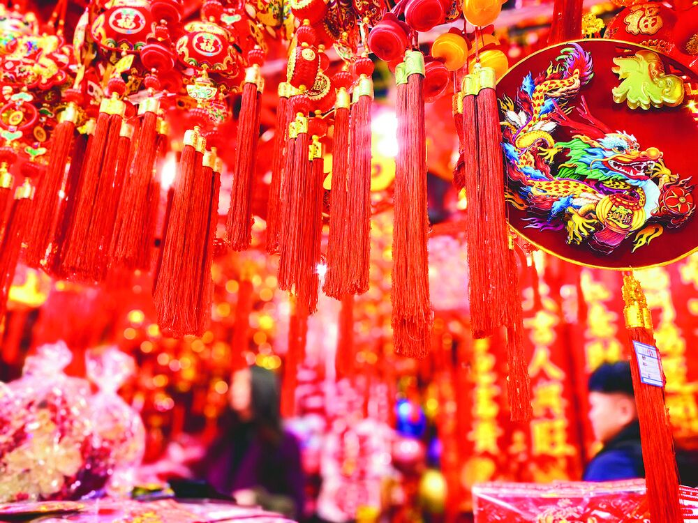 一直以來,龍在中國人的心中寄托著眾多美好愿景。隨著龍年春節的腳步越來越近,“生肖經濟”掀起新的消費熱潮。年貨市場中,各具特色的龍年主題春聯、呆萌的龍掛件、龍形玩具、龍元素黃金飾品、品牌服裝等在消費市場走俏。