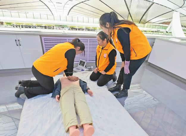 在母嬰護理區(qū),38歲的許娜文聚精會神聽著每一步介紹,認真做每一個動作,還時不時拿出手機記錄下關鍵的步驟。