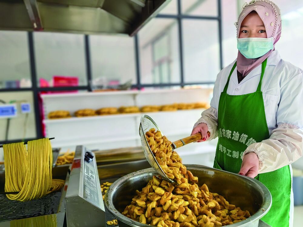 2022年,馬學忠申請幫扶工坊補助資金30萬元,升級改造油饃饃工坊加工車間,新建了庫房,購置設備,進一步挖掘和傳承民族餐飲特色,經不斷評比、改良、加工與創新,麻吾農家油饃饃更加順應市場,成為當地家喻戶曉的美食。