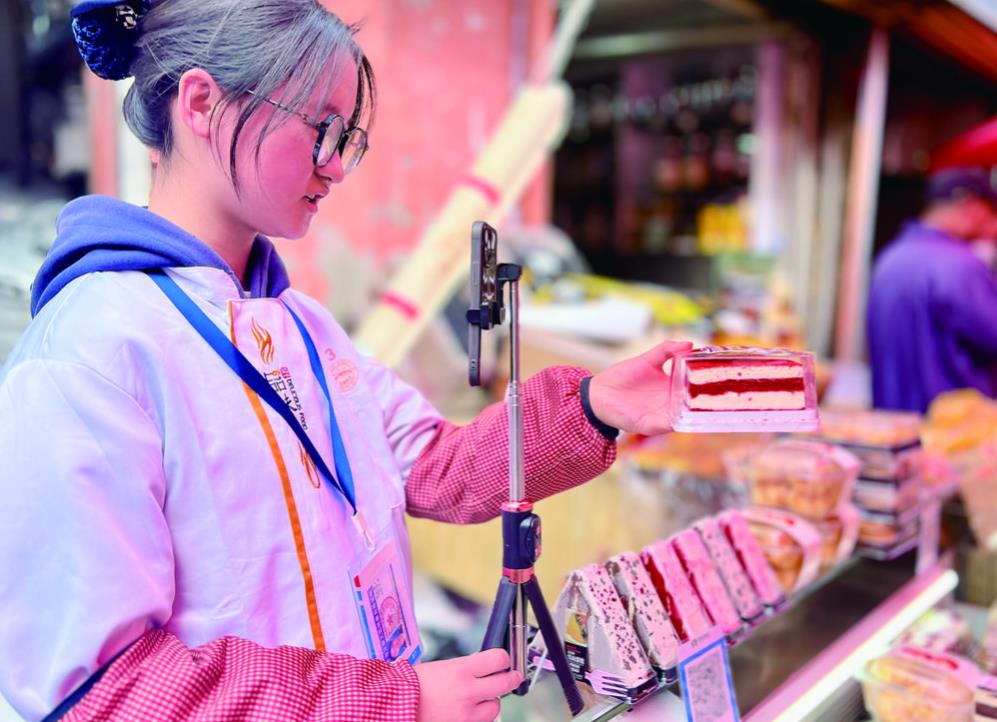 游客或穿梭于各攤位間詢問(wèn)價(jià)格;或和家人朋友排隊(duì)購(gòu)買商品;或拍照打卡記錄。商家或吆喝著;或手持三腳架直播自家美食;或忙碌地制作著各種吃食。下南關(guān)街散發(fā)出最具西寧特點(diǎn)的煙火氣息,演繹出別樣的人間煙火。李娜 魏雅琪 王晶 劉祎 攝