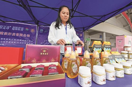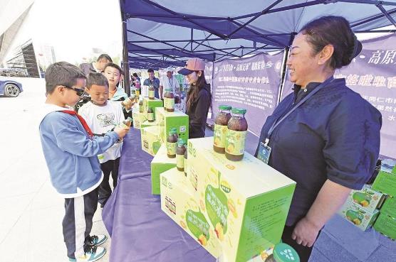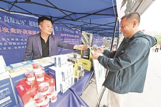 5月17日一早,體育中心二層平臺廣場的農畜產品展示區域變得熱鬧起來,不少農牧企業帶著各自的特色產品提前布置現場,為18日的活動做準備。