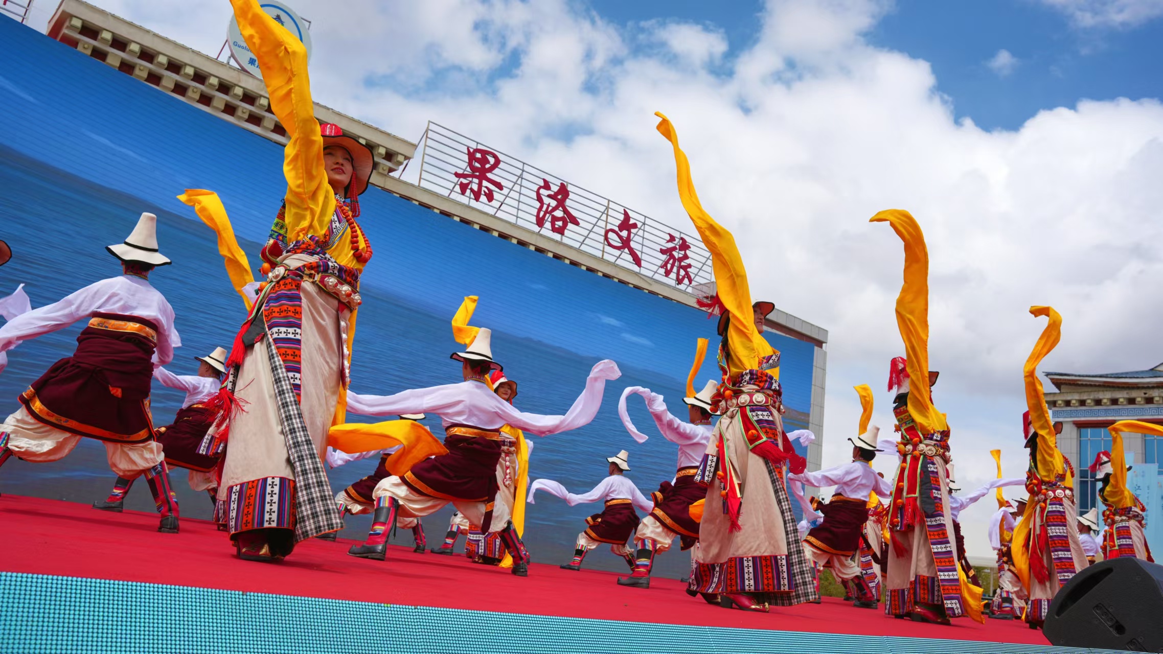此次活動以果洛本土優秀文藝節目表演及國家級非物質文化遺產展演為主,穿插各縣文旅推介和快閃,通過多種文藝形式同現場觀眾進行近距離互動,從而達到節目欣賞、宣傳推介、互動交流三重效果。并全方位介紹果洛州特有的飲食文化,通過特有的美食吸引廣大游客駐足品嘗。活動現場精心布置拍照打卡墻,讓游客體驗民族服飾的同時,更深入地了解地域民俗文化;文創產品展示區為果洛州特色產品搭建宣傳、銷售平臺,展銷獨具特色的民族文創產品;優秀攝影作品展示區讓游客不僅能夠了解果洛州的風土地貌、人文歷史,對宣傳培養本土優秀攝影家提供發展平臺。