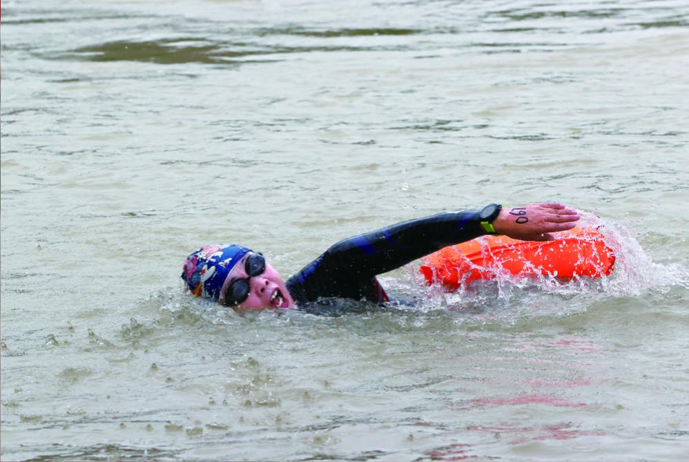 拉加鎮(zhèn)比賽河道像月亮形狀,有一段弧形,且流速較快,賽事組將去年的300米競速賽增加至500米,通過延長距離,避免運動員被水沖走,保證他們的發(fā)揮。米政平在這一站的經驗是要一直往12點方向游,根據(jù)河岸、河中不同的水流速及時調整角度和方向。不能盲目跟著別人游,會跑偏,要按照自己的路線和節(jié)奏才能游出好成績。