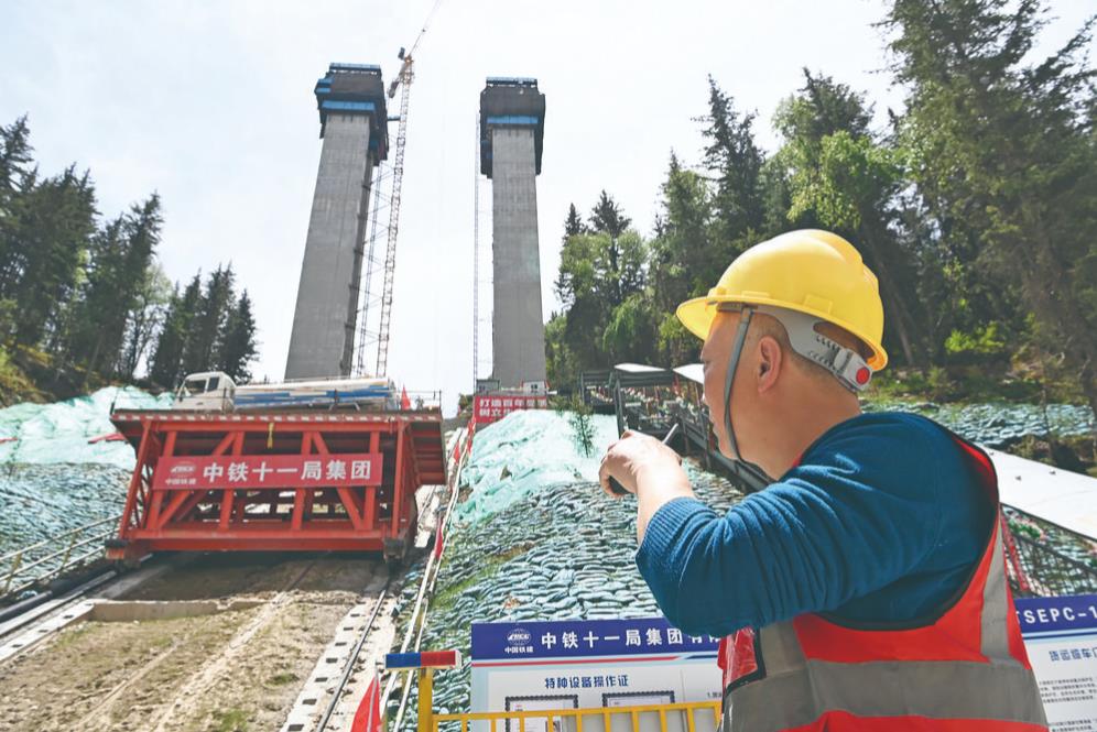 扎毛河特大橋地處青藏高原和黃土高原交接地帶,平均海拔3500米,全長(zhǎng)2.08公里,共計(jì)35跨,是典型的高墩大跨橋梁。10號(hào)主橋墩高151.7米,相當(dāng)于50層樓高,是青海在建第一高墩。