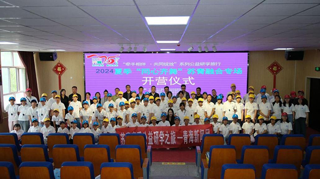 青海新聞網(wǎng)·大美青海客戶端訊 7月11日上午,“同心齊舞”蘇青牽手公益研學(xué)旅行開營儀式在青海省西寧市大通朔山中學(xué)舉行。來自江蘇、青海兩地75名品學(xué)兼優(yōu)的學(xué)生,以及青海地區(qū)參與此次公益研學(xué)旅行的學(xué)生家長共計(jì)100余人參加了開營儀式。