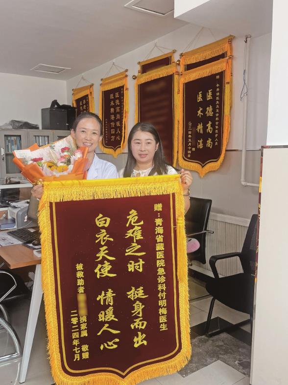 青海新聞網·大美青海客戶端訊 “付大夫,謝謝您,當時要不是你們緊急相救,真不知道我侄子后面會發生什么……”7月17日,西寧市民趙女士帶著一面錦旗和一束鮮花,走進青海省藏醫院急診科,向從死神手里救回侄子的醫生付明梅當面道謝。