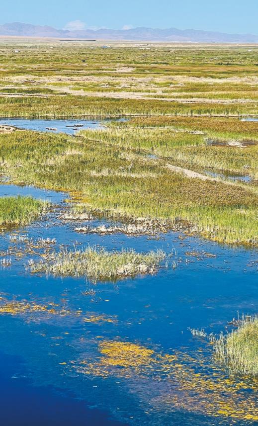 行走德令哈,隨處可見的濕地之美,不僅在于它那如詩如畫的自然風光,更在于它所蘊含的那份寧靜、和諧與生命的力量。站在濕地邊,空氣中彌漫著泥土與草木的清新氣息,在碧波蕩漾的湖面與藍天白云交相輝映下,碧綠的蘆葦隨風搖曳,仿佛是大自然最溫柔的筆觸。
