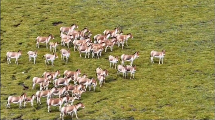 8月27日,游客布音在果洛州瑪多縣境內(nèi)偶遇了令人震撼的一幕:三個(gè)龐大的藏野驢種群,在黃河源頭的草甸上悠然自得,每群藏野驢都由成年驢爸爸媽媽細(xì)心守護(hù)著它們的小寶貝,構(gòu)成了一幅溫馨而又壯觀的畫面。