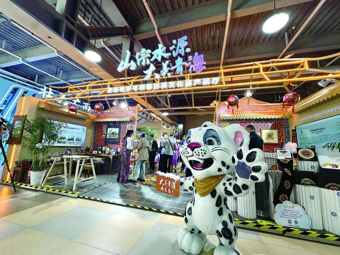 在第七屆中國國際進口博覽會上,青海搭建了“青海省老字號和非物質文化遺產”特裝展區,雪豹卡通形象擺放在展館醒目的位置,引得無數參觀者駐足。精美的繡片、濃郁的藏香、美味的牦牛肉產品等成為本次展會青海特裝展區的當家展品。