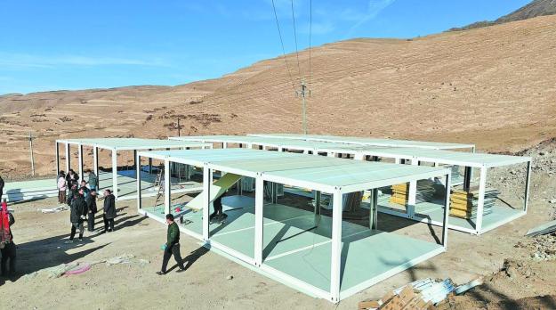 2023年12月26日,救援人員在牙木村搭建板房。陳俊 攝
