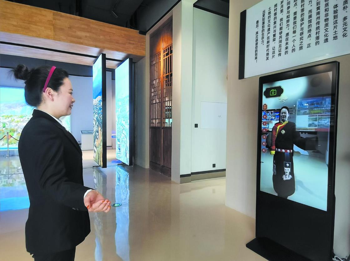 “傳統村落是民族文化的瑰寶,如果因不可抗力遭受破壞,那將是不可估量的損失。”張璇的話語中蘊含惋惜之情,“因此,館內通過全息展示+實物展陳+互動體驗的方式,全方位展示黃南傳統村落的結構特點、建筑技藝、歷史沿革。我們采用傾斜攝影等現代化技術,采集了黃南州傳統村落的影像信息,制作成實景三維模型,對黃南傳統村落進行全方位數字復刻,使這些珍貴的不可再生資源得到永續保存。你看,當你輕觸屏幕,可以對每一個村落進行放大、旋轉等多角度的觀察,近距離領略傳統村落之美。”
