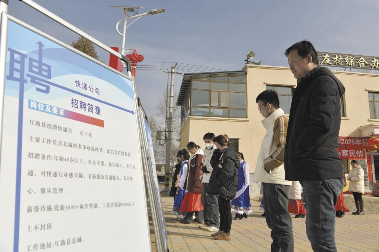 2月13日一大早,海東市互助土族自治縣丹麻鎮拉莊村廣場上,拉起了“送政策釋民惑,送溫暖聚民心”和“農民文化藝術節”的橫幅,旁邊還擺放著招聘展板,干部和鄉親們熱熱鬧鬧圍坐在廣場上,一邊“喝茶聊天話家常”,一邊“對癥下藥講政策”。