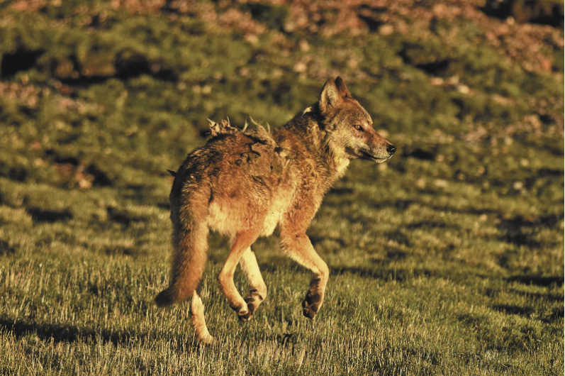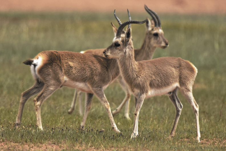 可可西里的荒原上,藏羚羊群踏碎寒霜。它們細(xì)長的四肢掠過荒原,金棕色絨毛在風(fēng)中泛起漣漪,宛如流動的琥珀。雄性藏羚羊頭頂?shù)年鹘莿澠葡”】諝猓诤0?000米左右的高處書寫著生存的倔強。牧民帳篷旁,藏野驢揚起雪塵奔跑,脖頸鬃毛如同飄動的經(jīng)幡,與天際線處終年不化的冰川遙相呼應(yīng)。