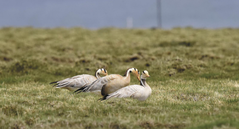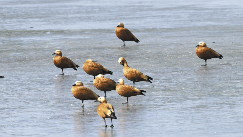 青海湖畔的濕地是鳥類的天堂。黑頸鶴在淺水中優(yōu)雅踱步,修長脖頸劃出水墨般的曲線。斑頭雁群掠過水面,黑白羽翼攪碎云影,驚起層層疊疊的碧浪。當(dāng)暮色浸染草原,藏狐帶著幼崽在鼠兔洞前駐足,金黃皮毛融進夕照,天地間奏響生生不息的交響。
