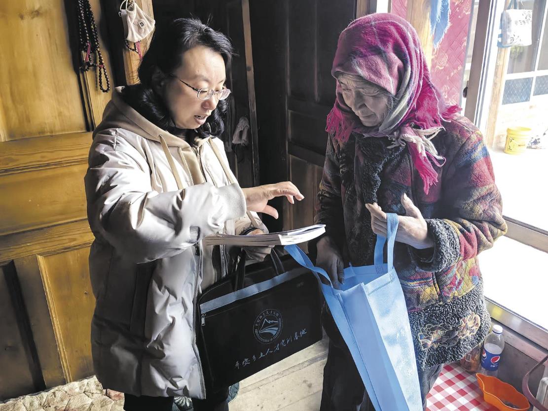 張麗萍(左)走村入戶為百姓進一步講解政策。本人供圖