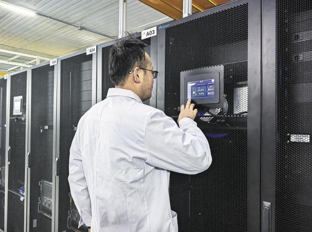 三江源綠電智算融合示范園運維人員查看設(shè)備運行情況。 王菲菲 攝