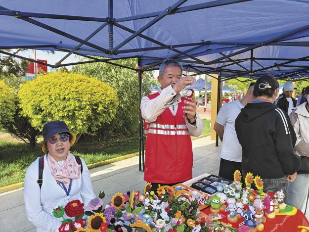 義賣殘疾人制作的手工藝品,為殘疾人增加收入。記者 丁玉梅 攝