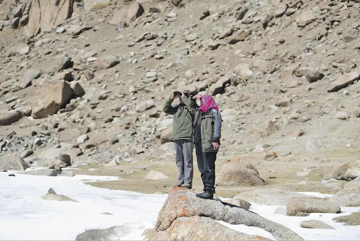 管護區域內野生動物種類較多,尤其以野牦牛、巖羊的數量為多,尚依說,這幾年野牦牛的種群在增大,巖羊經常在屋子背后的巖石上停歇。“以前它們怕人,現在根本不害怕。去年,一只棕熊鉆到了房子里,我們看見時,棕熊像人一樣站著,一只前爪拿著一塊牛肉,另一只前爪提著一個牛腿在啃。”尚依夫婦輕松地講述著和野生動物的奇妙相遇,并得出結論:只要不惡意傷害野生動物,野生動物也不會主動攻擊人。