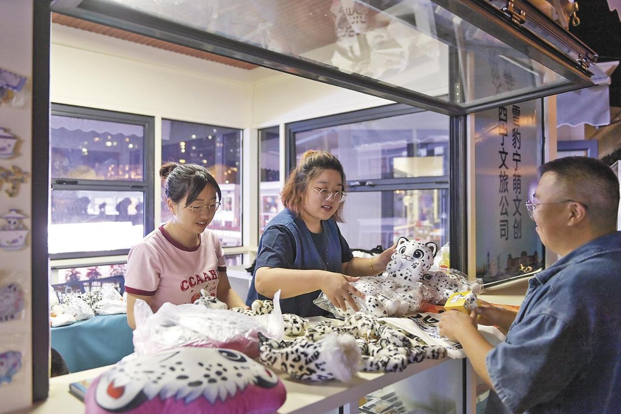 市集區域更是一片繁忙景象。美食街彌漫著各種美食的香氣,釀皮、牦牛酸奶、沙棘汁等青海特色美食吸引了眾多市民駐足品嘗。攤主們熱情地招呼著顧客,臉上洋溢著燦爛的笑容。文創產品及非遺手工作品區,市民們穿梭在各個攤位間,仔細欣賞著精美的大通剪紙、絢麗的土族盤繡、富有創意的各類文創產品等。“我就喜歡咱青海的這些傳統文化,今天特意來看看有沒有新的發現。”市民宋女士被一件件精美的非遺作品深深吸引,她端詳著土族盤繡,不時向工作人員詢問制作工藝,“這盤繡的手藝真是絕了,一針一線都飽含著咱們青海人民的智慧,希望這樣的技藝能一直傳承下去。”不少人還親自參與到手作體驗活動中,在非遺代表性傳承人的指導下進行體驗,感受傳統技藝的獨特魅力。