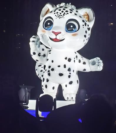 據了解,雪豹“寧萌”造型為玻璃鋼材質,高4.5米,可以360度轉動,底座為1.8米,總高6.3米,為西寧市最大“寧萌”卡通形象。按照西寧市城市“寧萌”IP形象3D建模打印,確定表情及比例后再進行玻璃鋼制作,突出生動活潑、親民感。