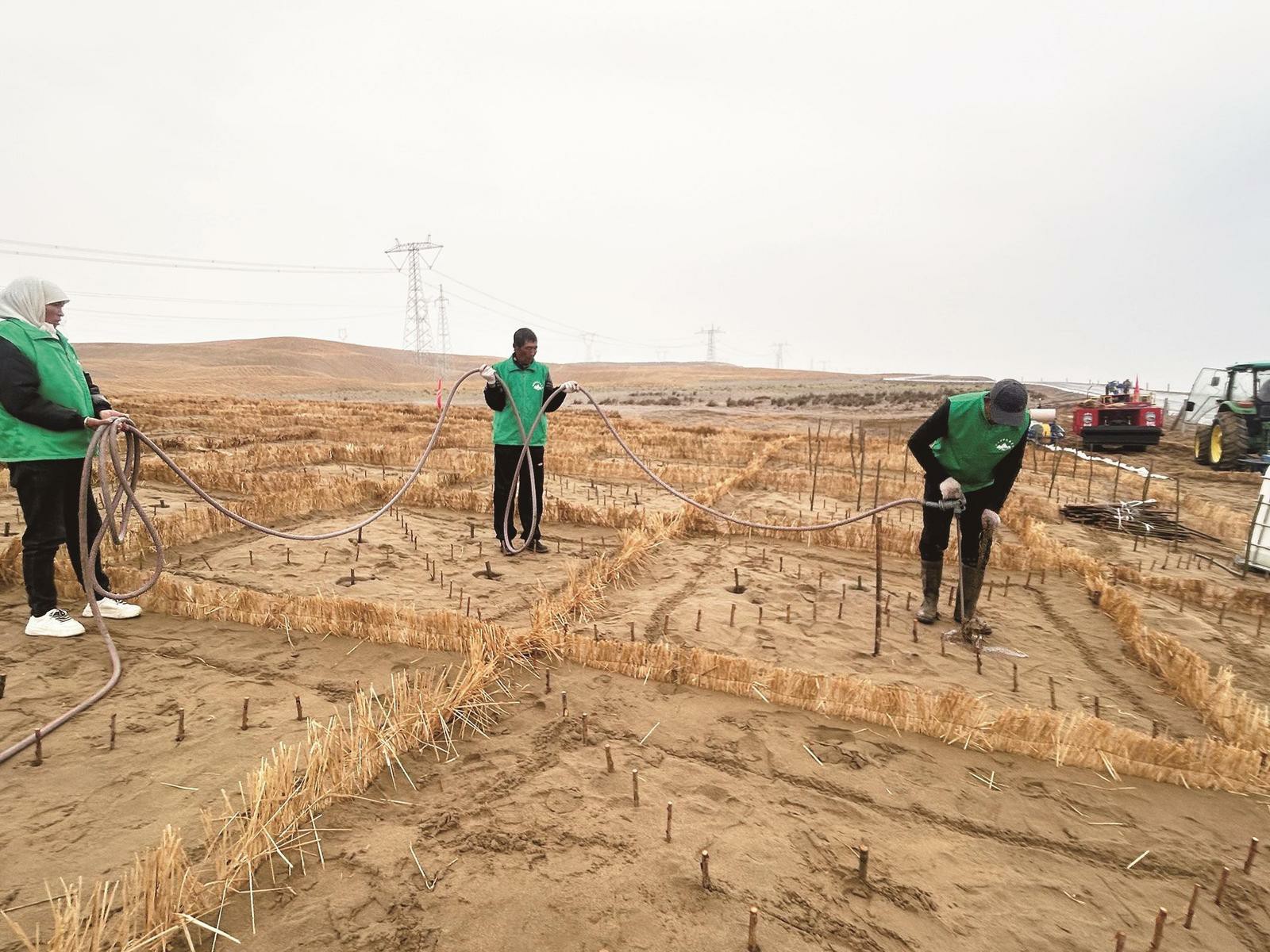 中國林科院京區黨委副書記邢紅介紹,竹材、木質復合材料,可降解尼龍沙障袋等綠色材料,突破傳統沙障成本高、易老化的局限,形成“低消耗、高效率”的治沙方案。
